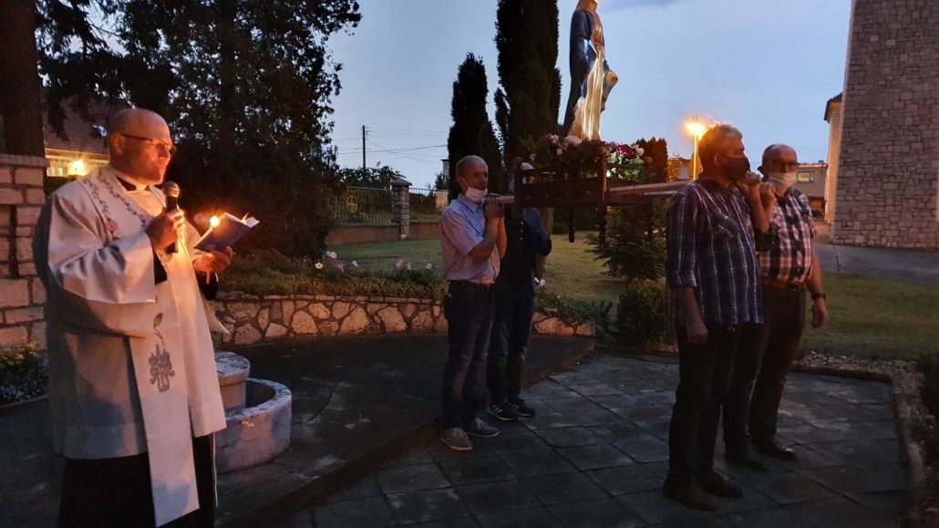 Na pamiątkę objawień Matki Bożej w Fatimie, na przebłaganie za nasze grzechy i wymodlenie potrzebnych łask za pośrednictwem Najświętszej Panienki, trzynastego dnia miesiąca – od maja do października odbywają się nabożeństwa fatimskie. W czasie dwóch pierwszych nabożeństw w kościele odmawialiśmy różaniec i śpiewaliśmy pieśni ku czci Matki Bożej, następnie ze śpiewem na ustach, z figurką Matki Bożej wyszliśmy na procesję ze świecami wokół kościoła. Wieczór zakończył się pieśnią na Dobranoc przy figurze Matki Bożej na placu kościelnym. Poniżej zdjęcia z procesji ze świecami podczas nabożeństwa fatimskiego 13.06.2020 r.