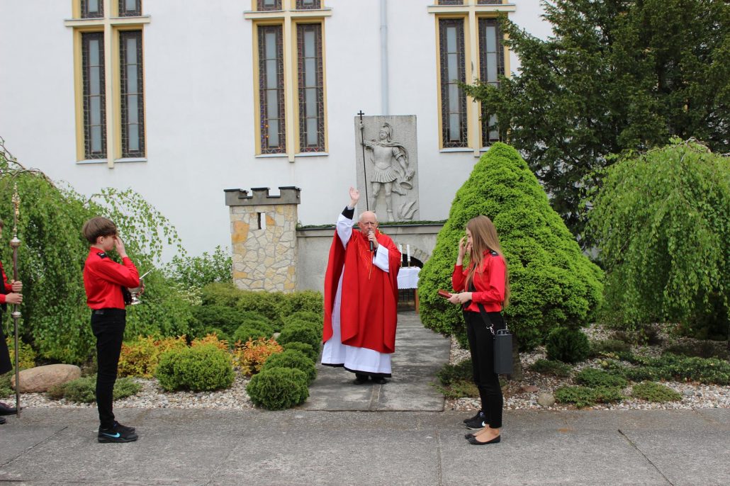 Po Mszy św. wspólnie przemaszerowano pod pomnik św. Floriana na placu kościelnym, gdzie odbyło się krótkie nabożeństwo z błogosławieństwem.